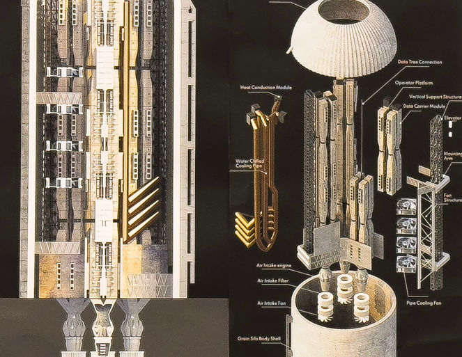 Data Prototypes: Visual Narratives showcases nine projects developed during the fall 2023 elective course Infrastructural Seeds: Data Centers in the Era of Ultrareal (ARCH 3308/6308/6509) taught by Design Teaching Fellow Eduardo Cilleruelo Terán. The work explores frameworks on the juxtaposition between data centers and architectural bodies, combining theory-driven scenarios and visual languages. Data storage becomes an embodied critical object to keep institutions, companies, and all layers of information-exchange elements operatable, fluctuating and modifying the mirror between our digital and physical entities. The question here leads to a series of tactics and strategies positioning data prototypes as hyper-technological objects in a variety of contexts, addressing multiple scales on territorial relationships, resource sharing, automatization, and labor.